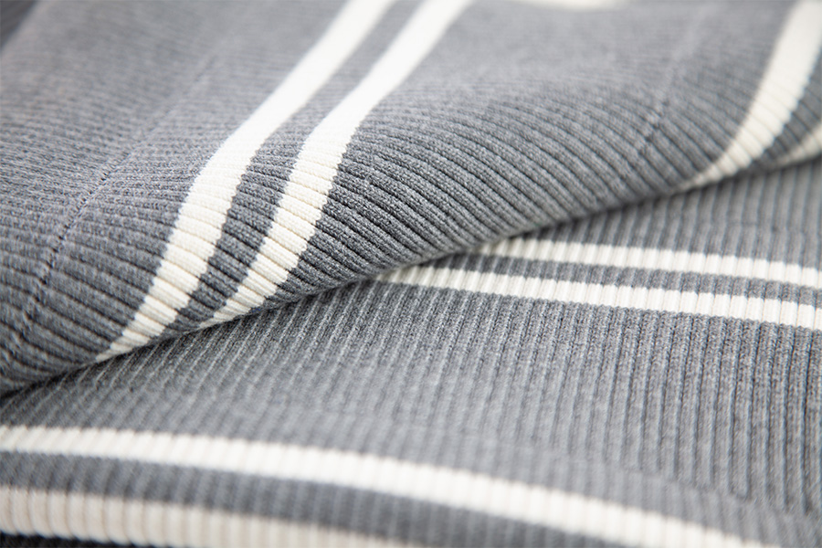2. Ribstrik i polyester : Et moderne vidunder I modsætning til den tidløse tiltrækning af bomuldsribstof repræsenterer polyesterribstrik et moderne vidunder af tekstilteknik, kendetegnet ved dets spændstighed, ydeevne og alsidighed. Dette strikstof er sammensat af syntetiske polyesterfibre og har en tydelig ribbet tekstur, der minder om dets modstykke i bomuld, omend med forbedret styrke og holdbarhed. Ribstrik i polyester er indbegrebet af kombinationen af stil og funktionalitet, og lever op til kravene fra moderne livsstil med uovertruffen effektivitet.