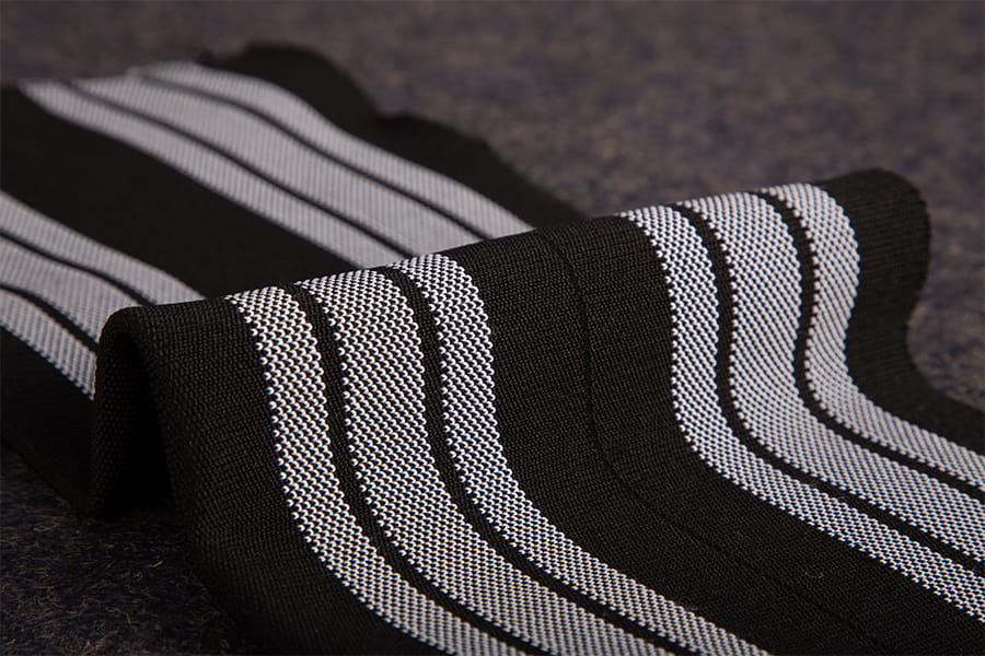 I modsætning til den tidløse tiltrækning af bomuldsribstof repræsenterer polyesterribstrik et moderne vidunder af tekstilteknik, kendetegnet ved dets spændstighed, ydeevne og alsidighed. Dette strikstof er sammensat af syntetiske polyesterfibre og har en tydelig ribbet tekstur, der minder om dets modstykke i bomuld, omend med forbedret styrke og holdbarhed. Ribstrik i polyester er indbegrebet af kombinationen af ​​stil og funktionalitet, og lever op til kravene fra moderne livsstil med uovertruffen effektivitet.